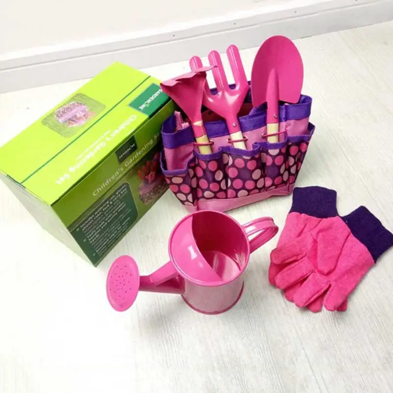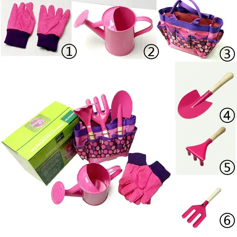 Review 6 PCS/Set Children's Garden Tool Set Garden Outdoor Metal Shovel Gloves Kettle Set